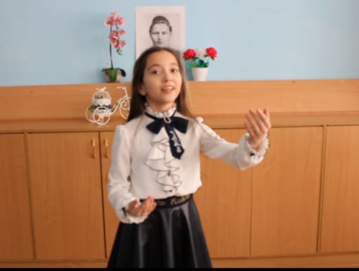 Гайниахметова Амалия (руководитель - учитель татарского языка и литературы Акберова Л. З.) участвует в республиканском конкурсе "Тукаевские напевы". Она рассказывает стихотворение Г. Тукая "Родной язык" на русском, башкирском, татарском и английском языках.