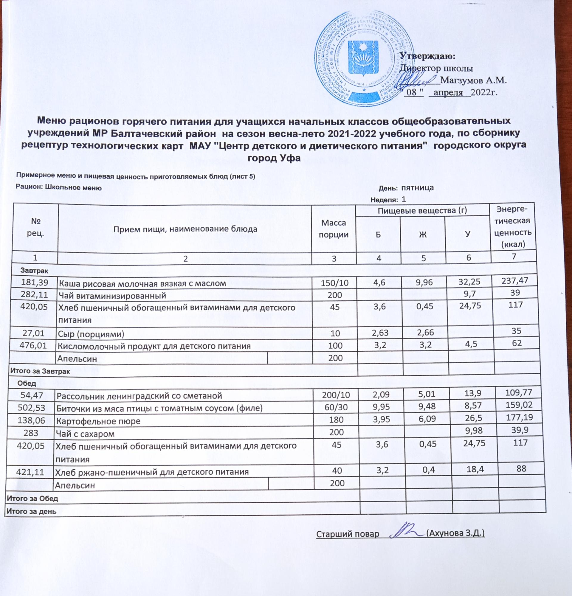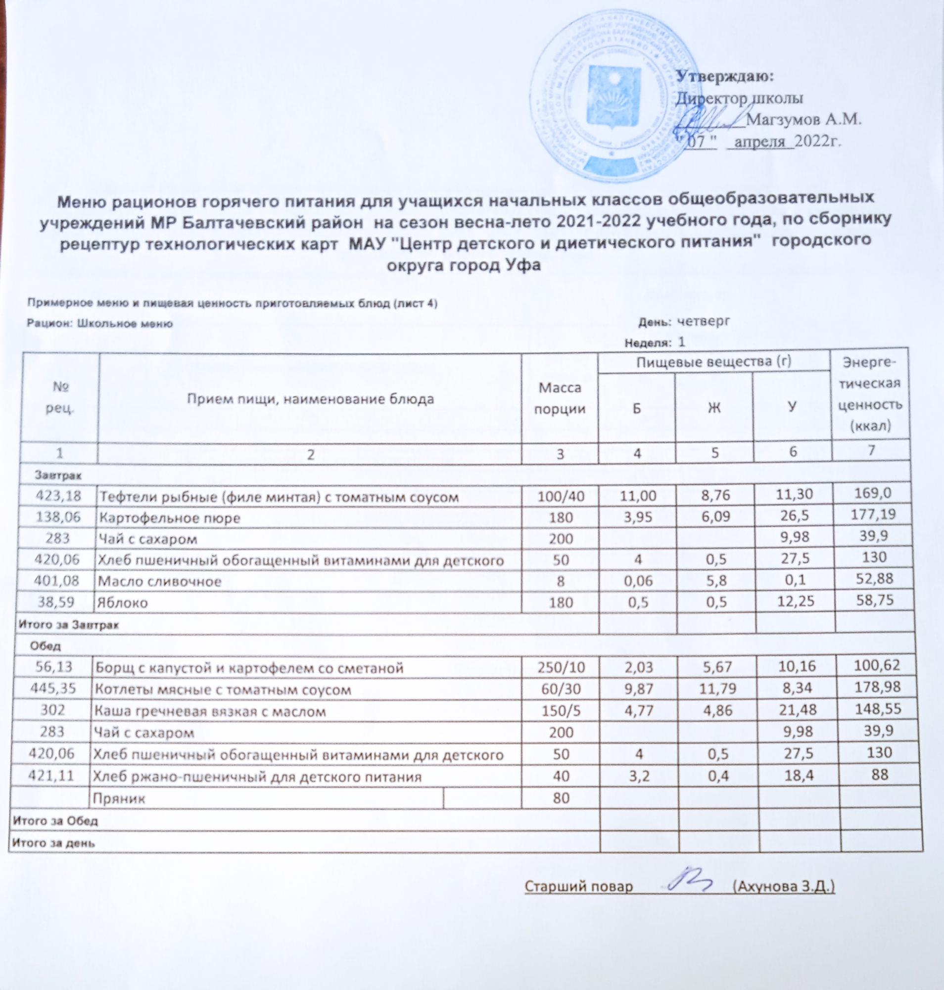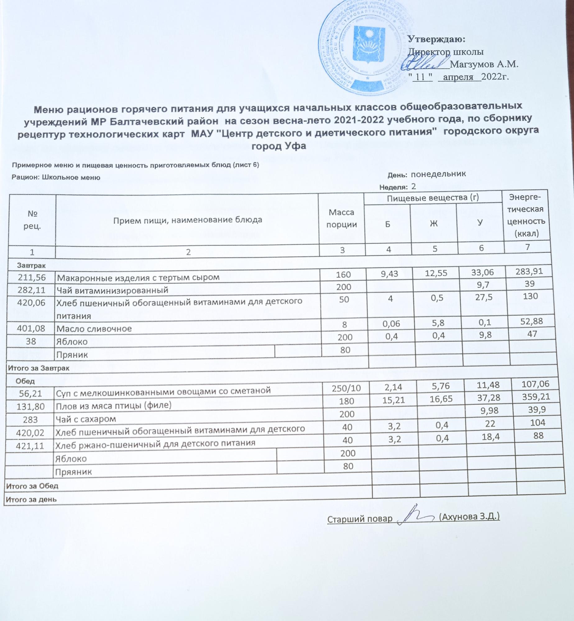 (Фото меню обеда для учащихся 1-4 классов(2 смена))