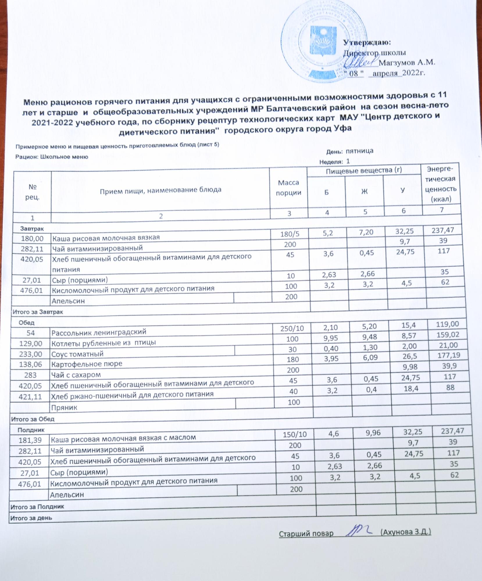 (Фото меню завтрака для учащихся с ОВЗ(5-11 кл.))
