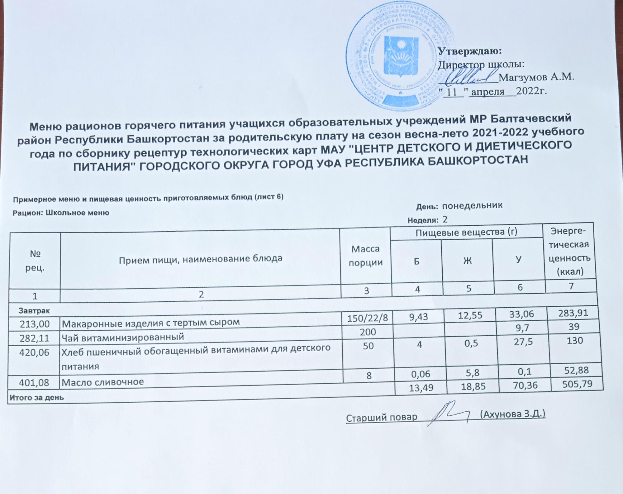(Фото меню завтрака для учащихся для учащихся из ММС, для учащихся за род.плату(67р.21к.) )