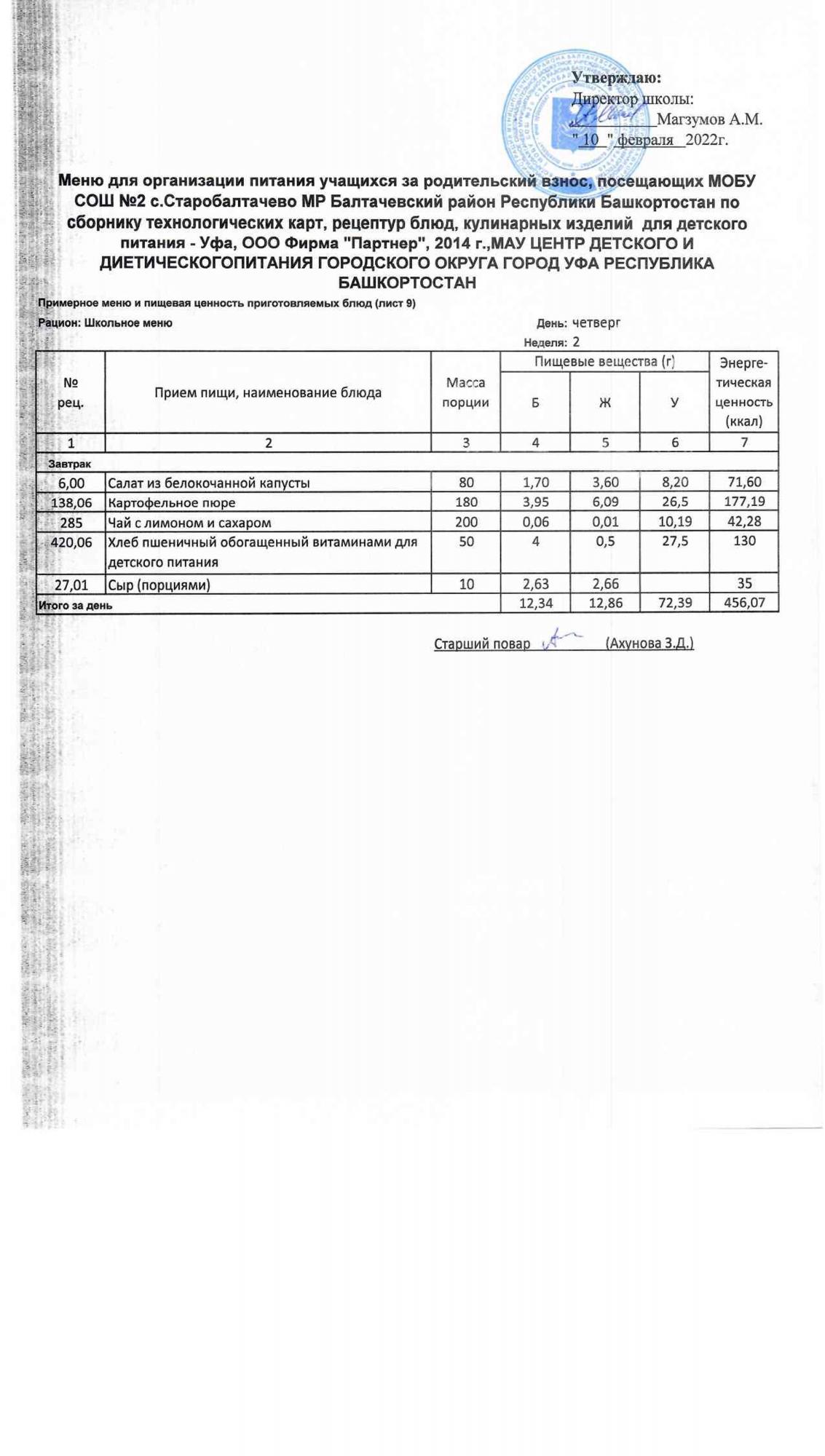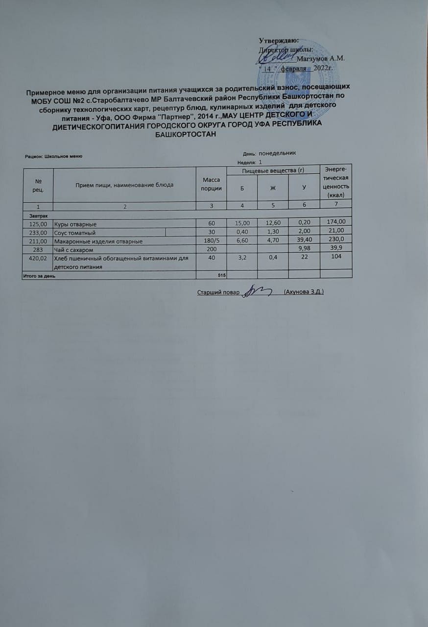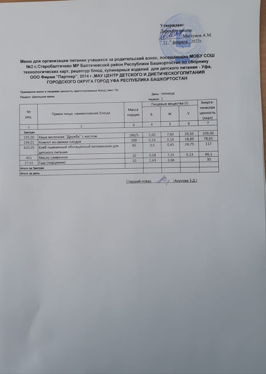(Фото меню завтрака для учащихся за род.плату(30 руб.))