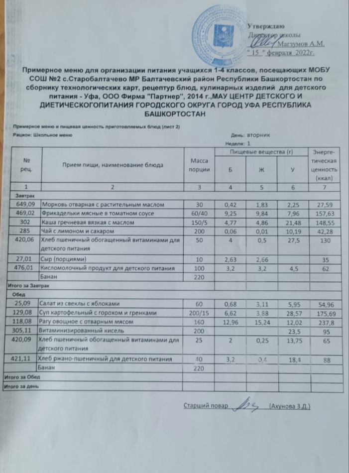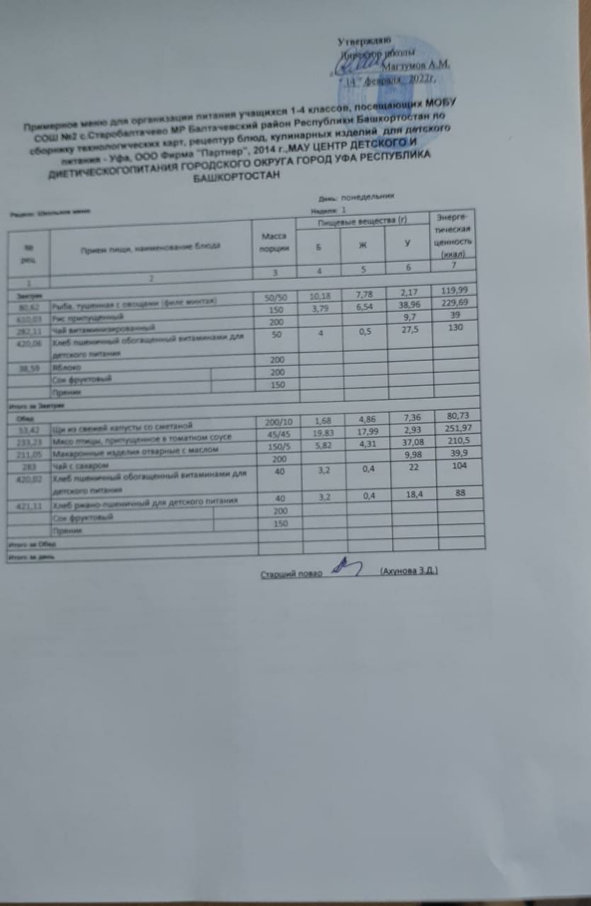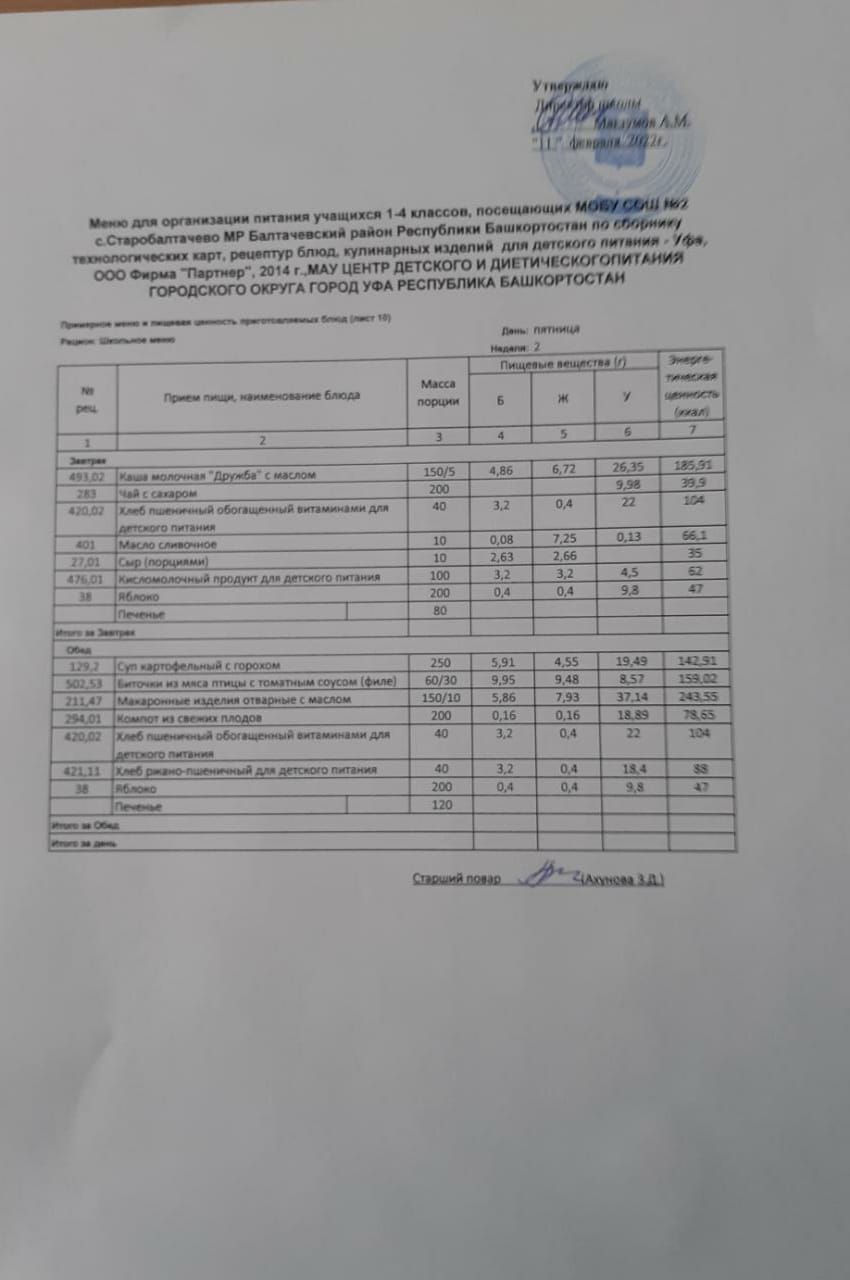 (Фото меню обеда для учащихся 1-4 кл.(2 смена))