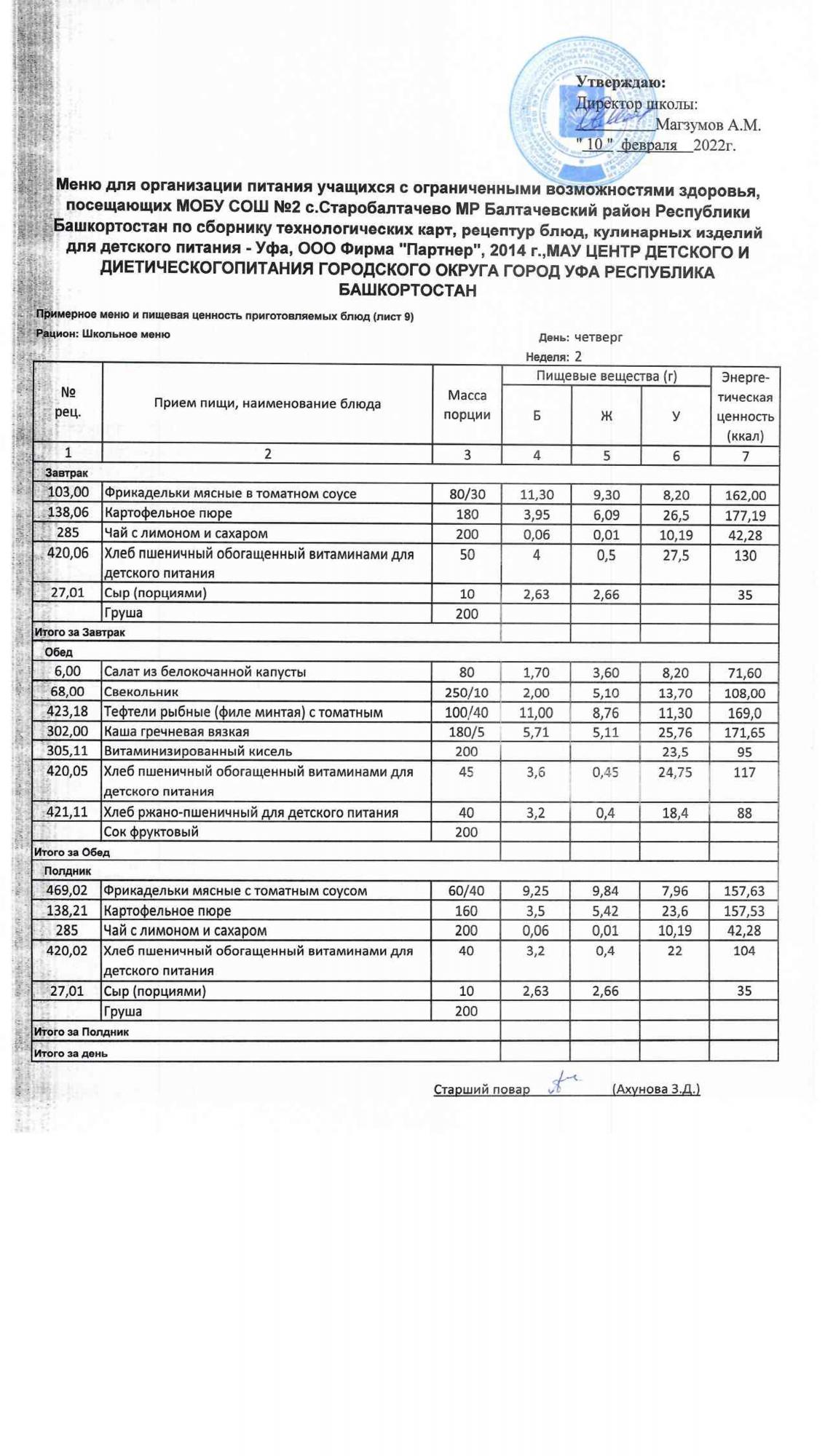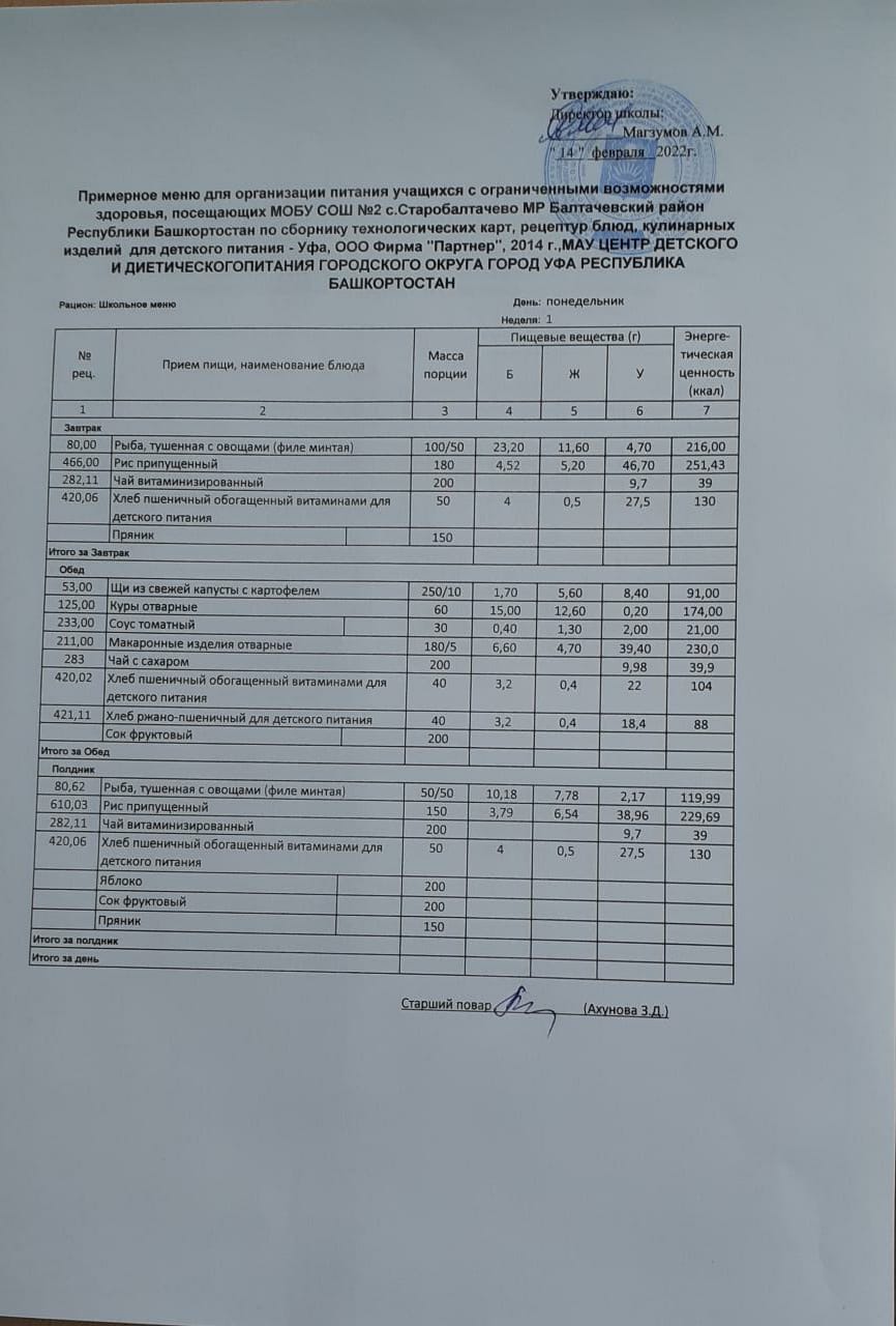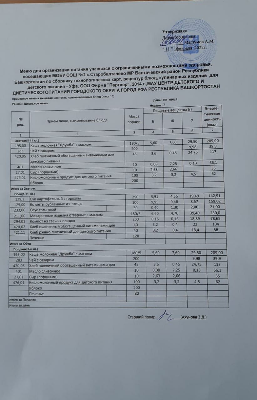 (Фото меню обеда для учащихся с ОВЗ)