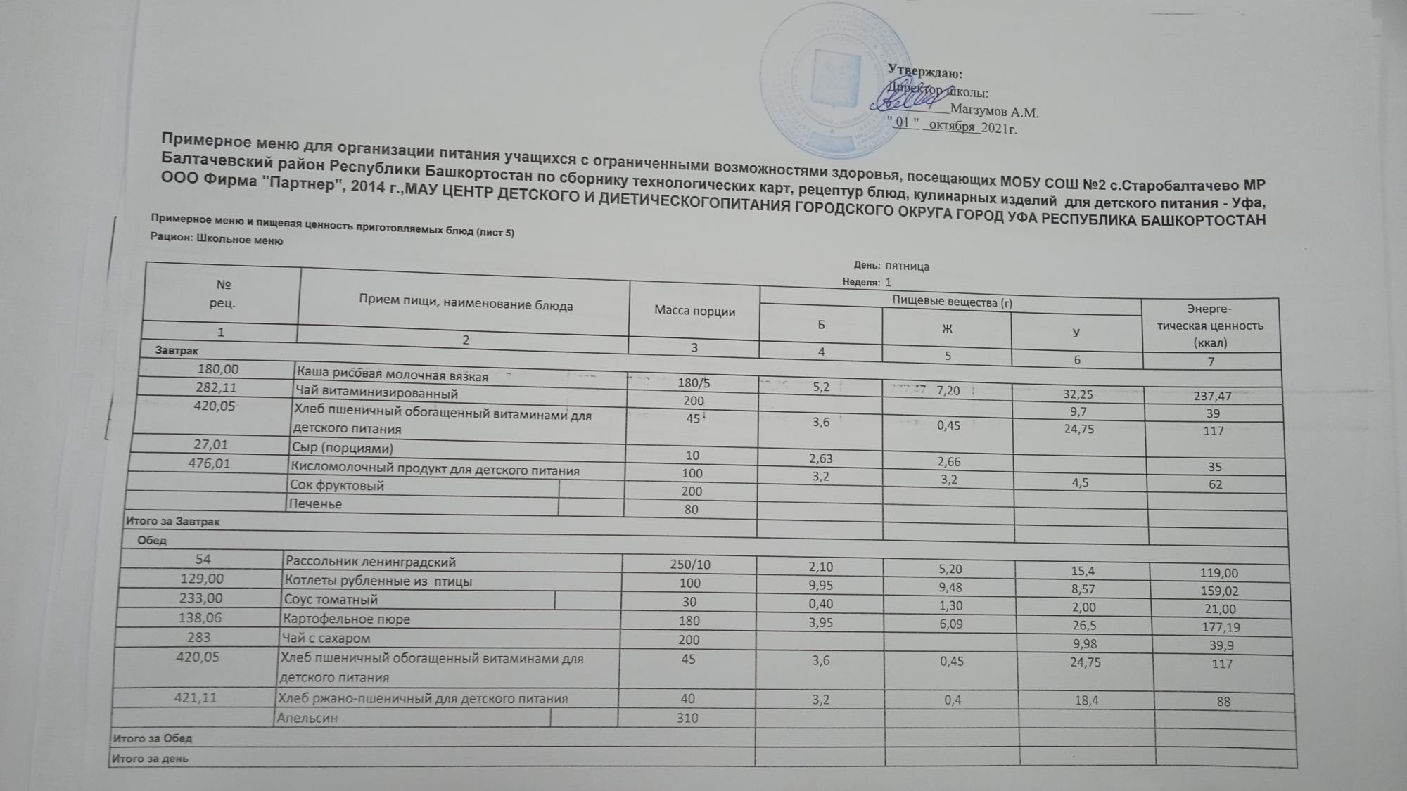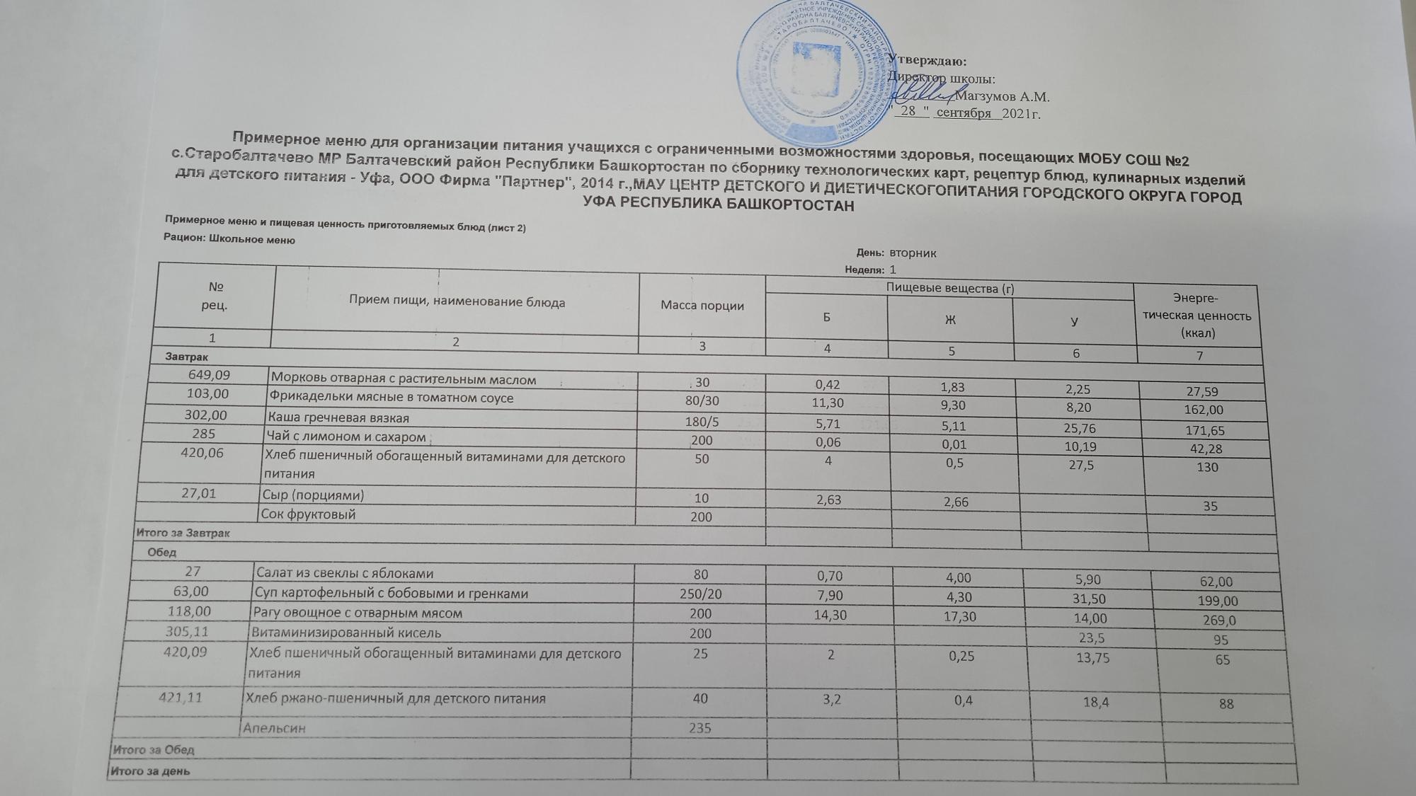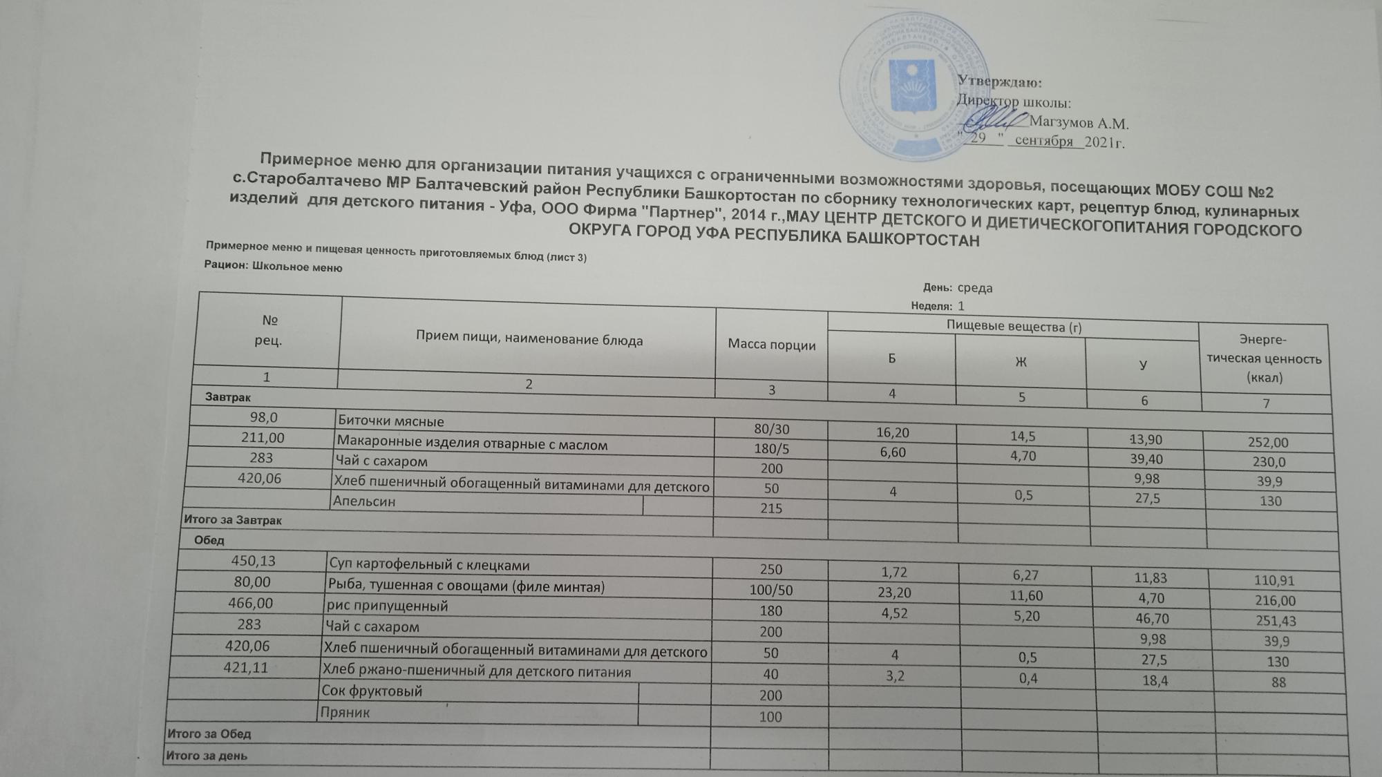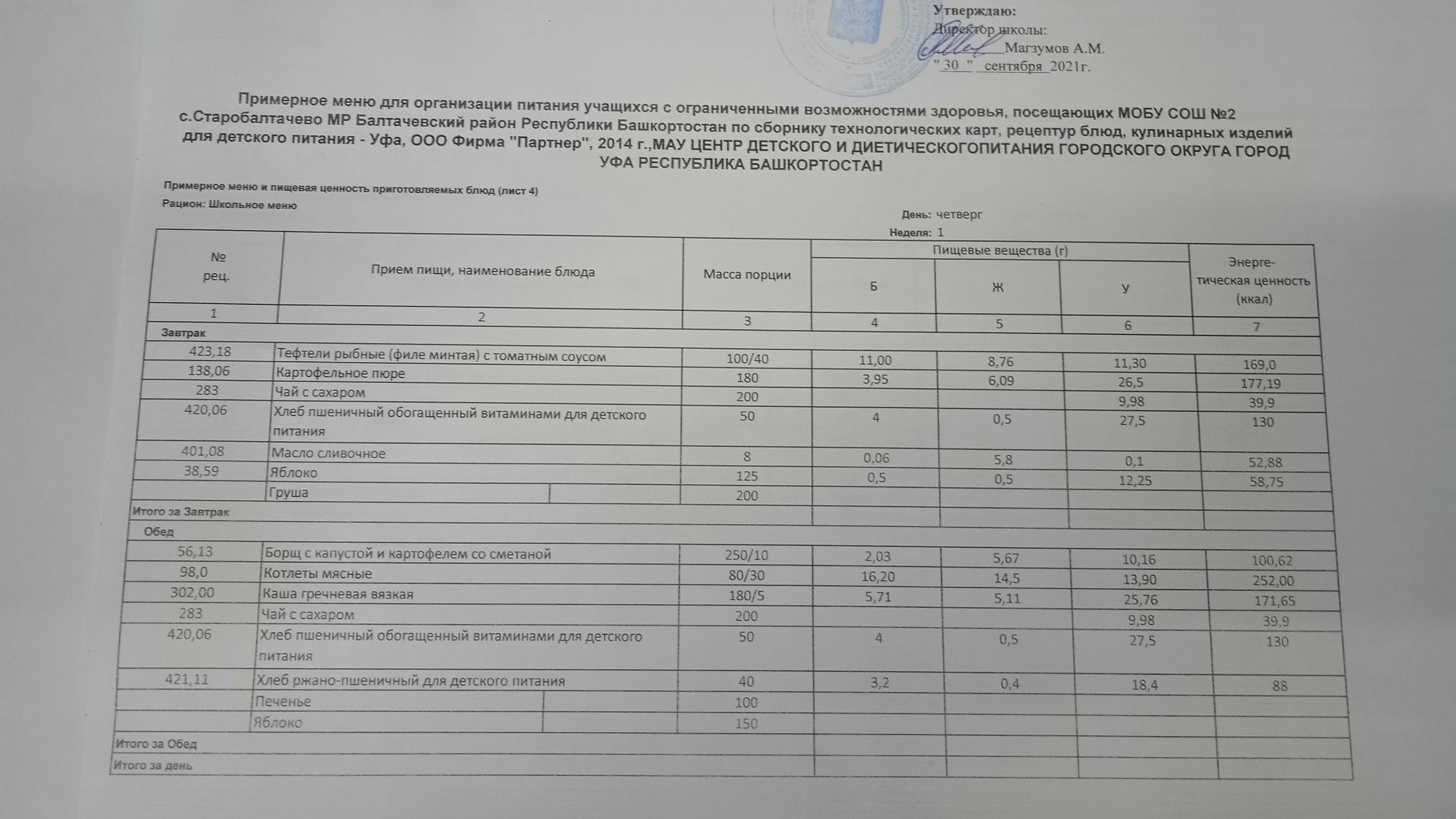 (Фото меню обеда для учащихся с ОВЗ)