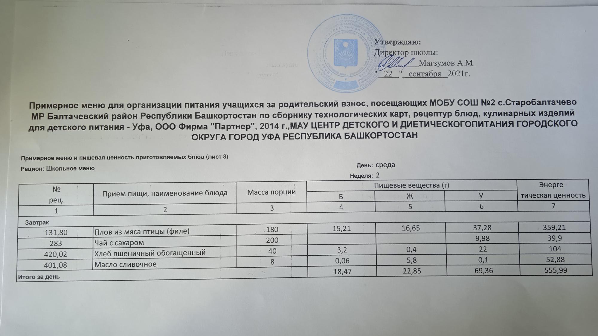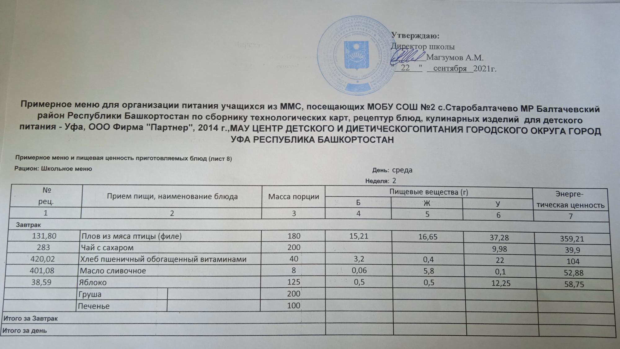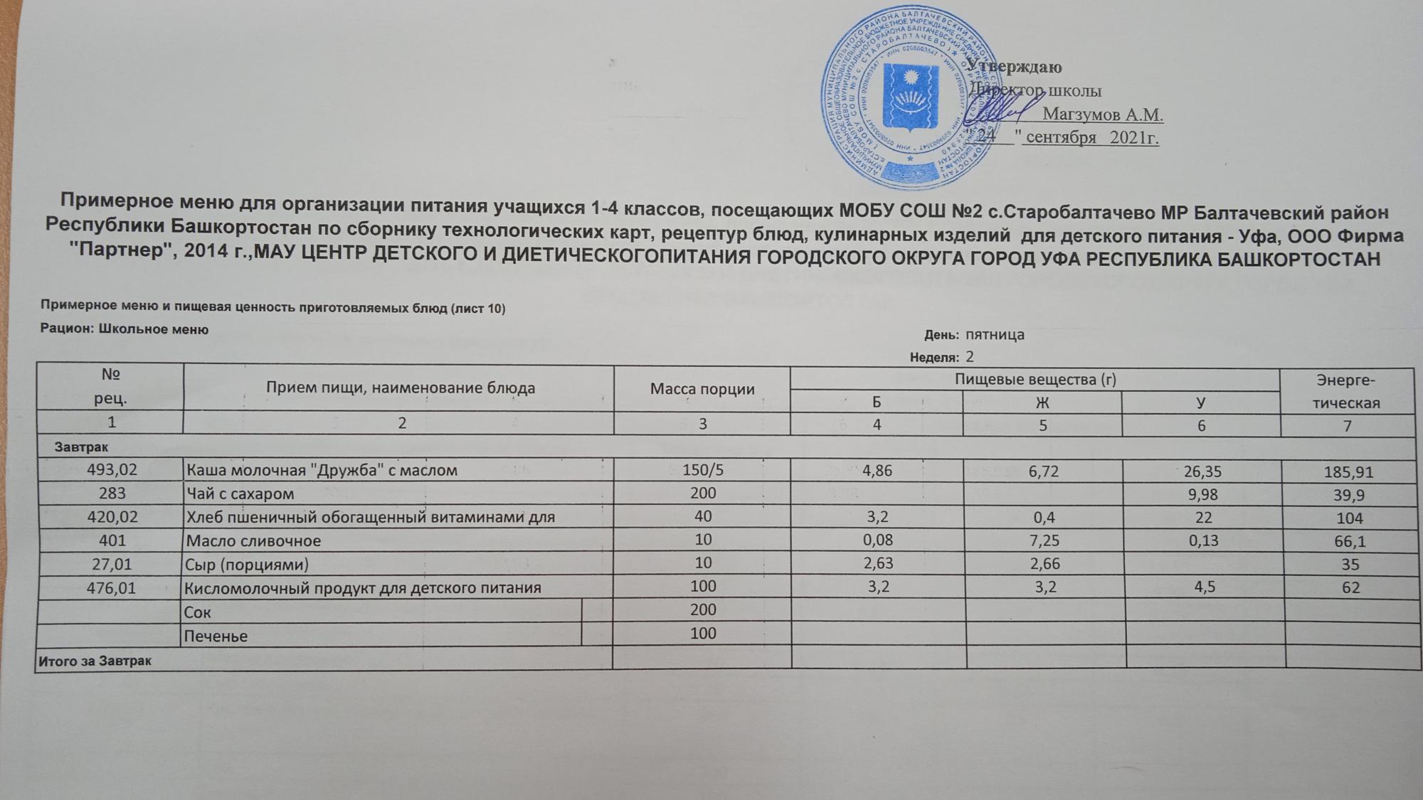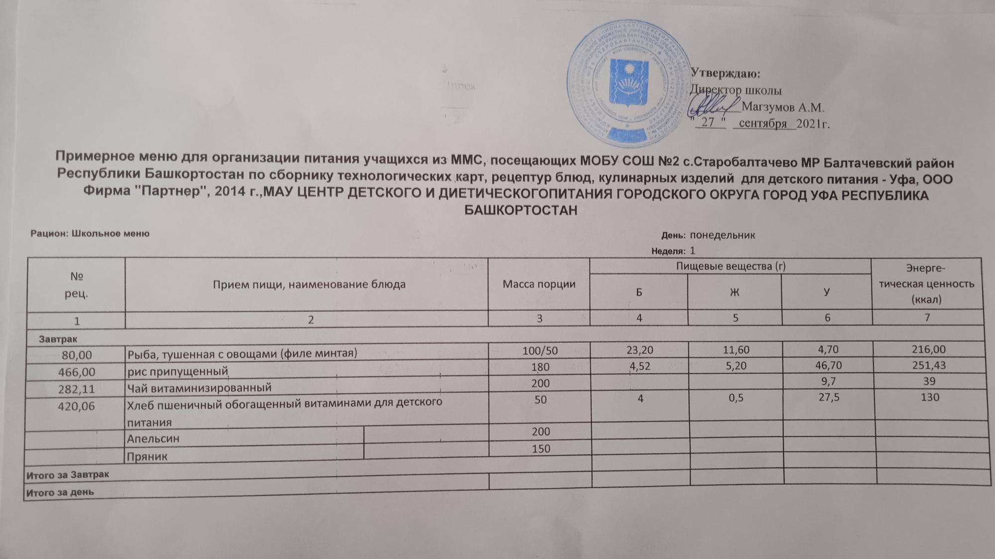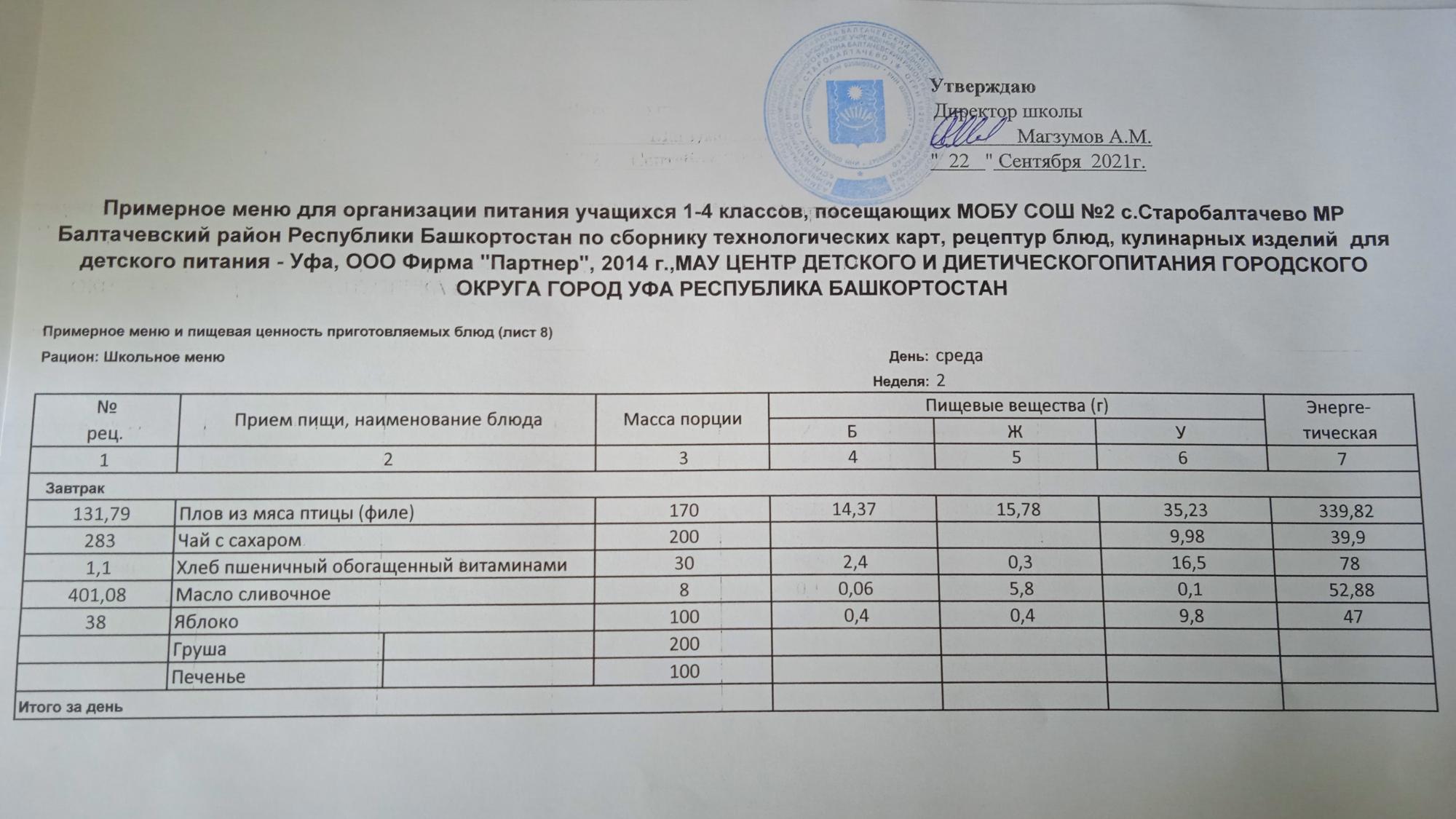 (Фото меню завтрака для учащихся за родительский взнос)