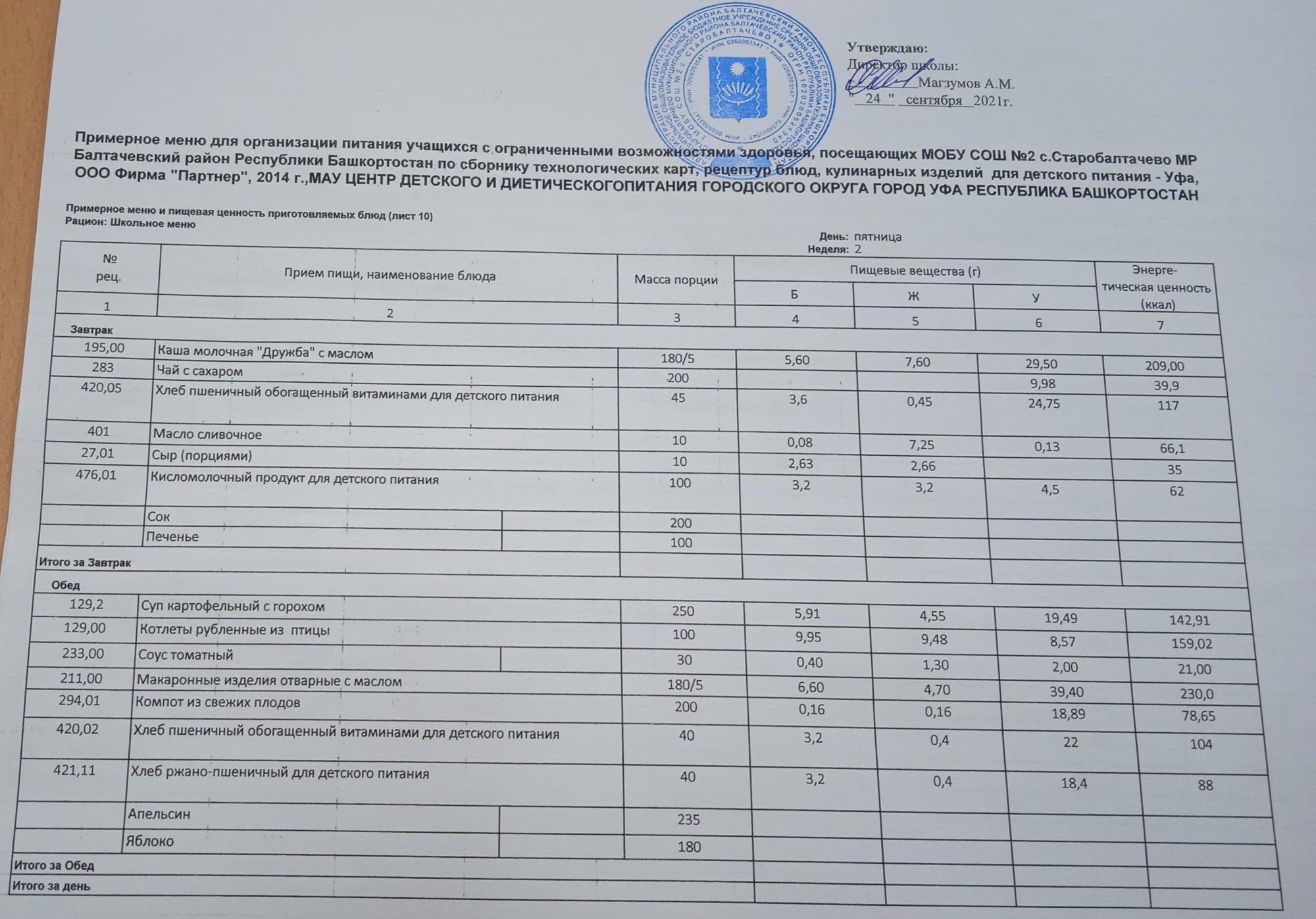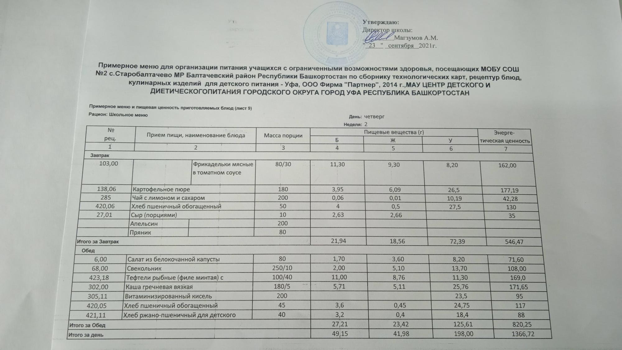 (Фото меню обеда для учащихся с ОВЗ)