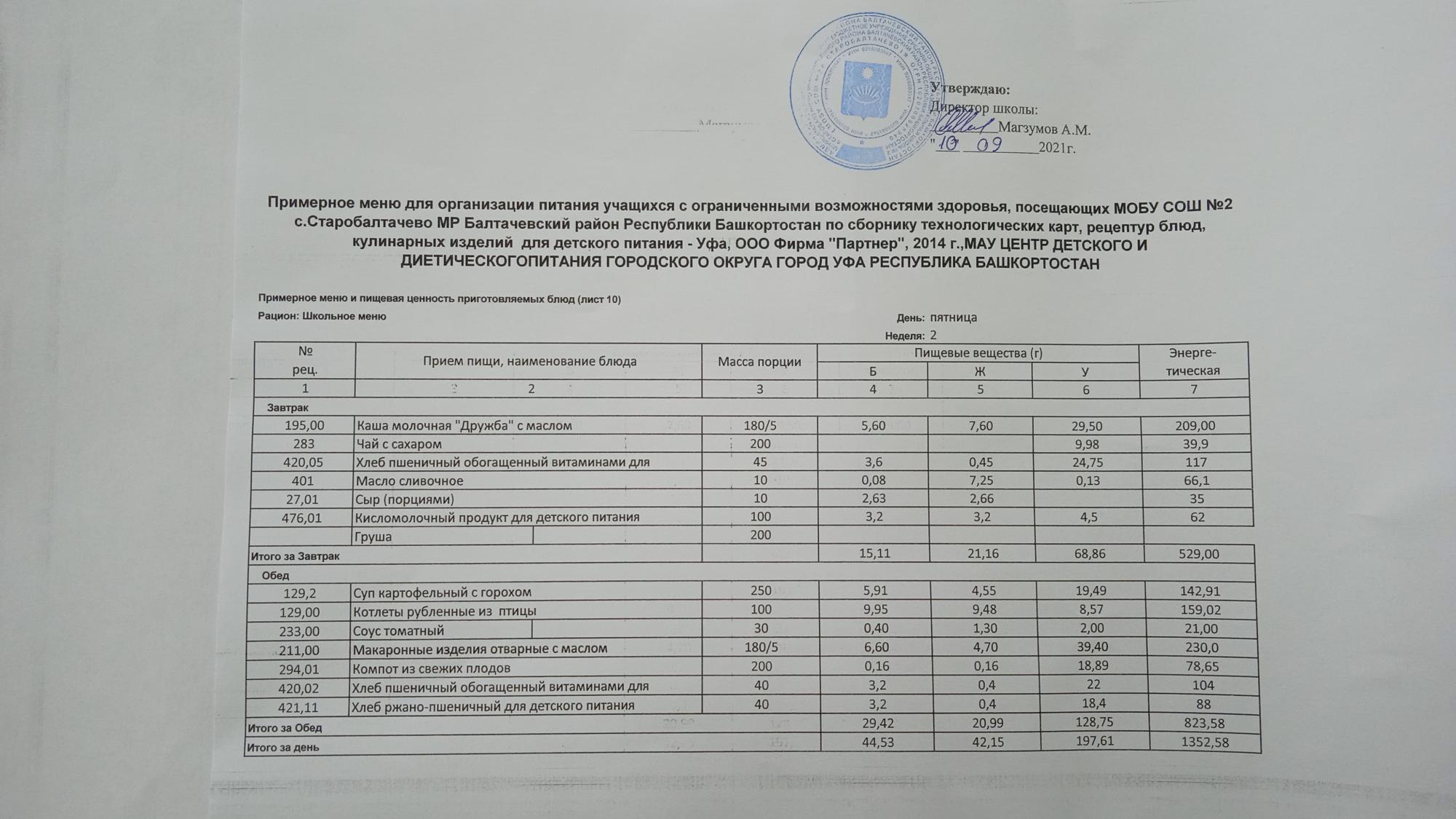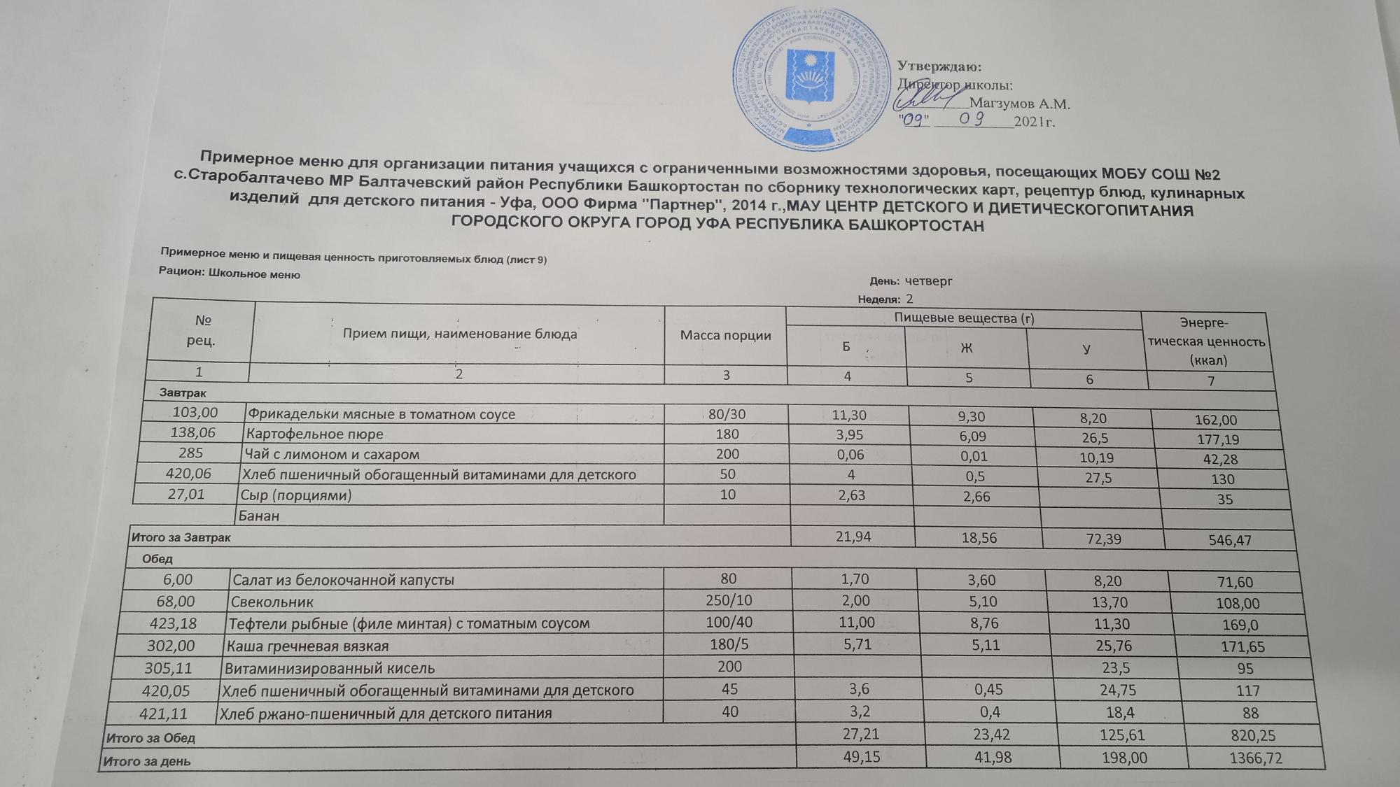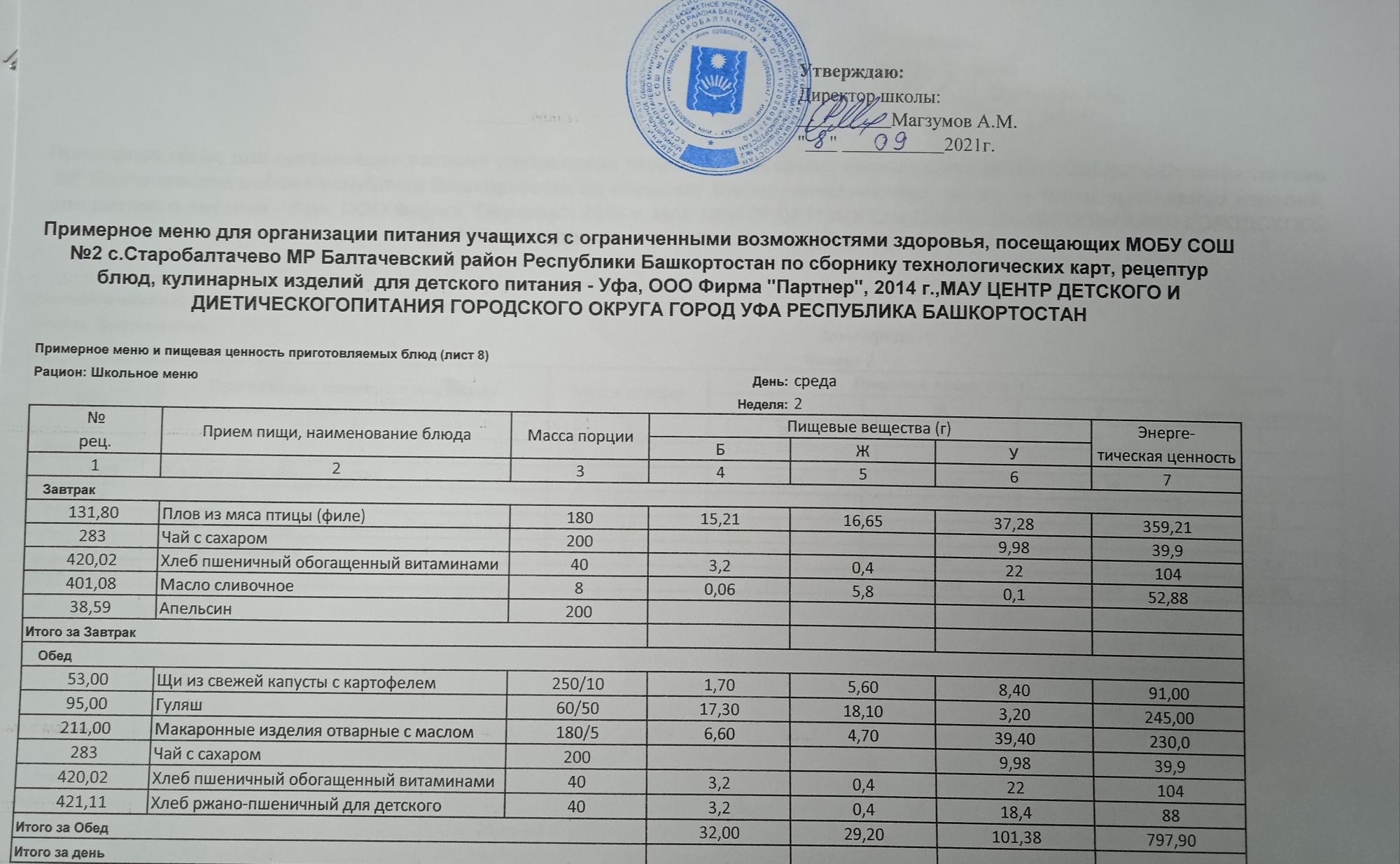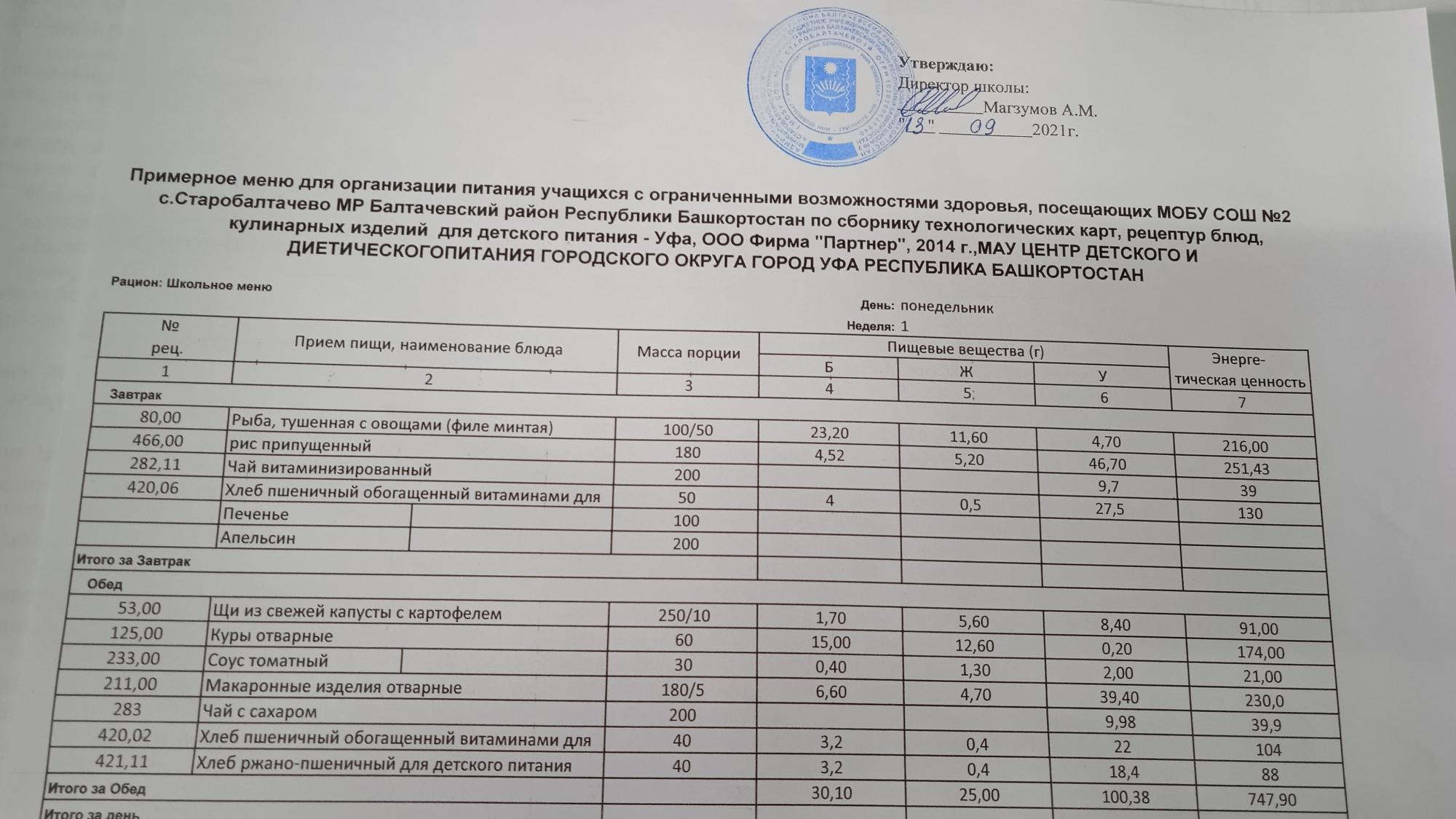 (Фото меню обеда для учащихся с ОВЗ)