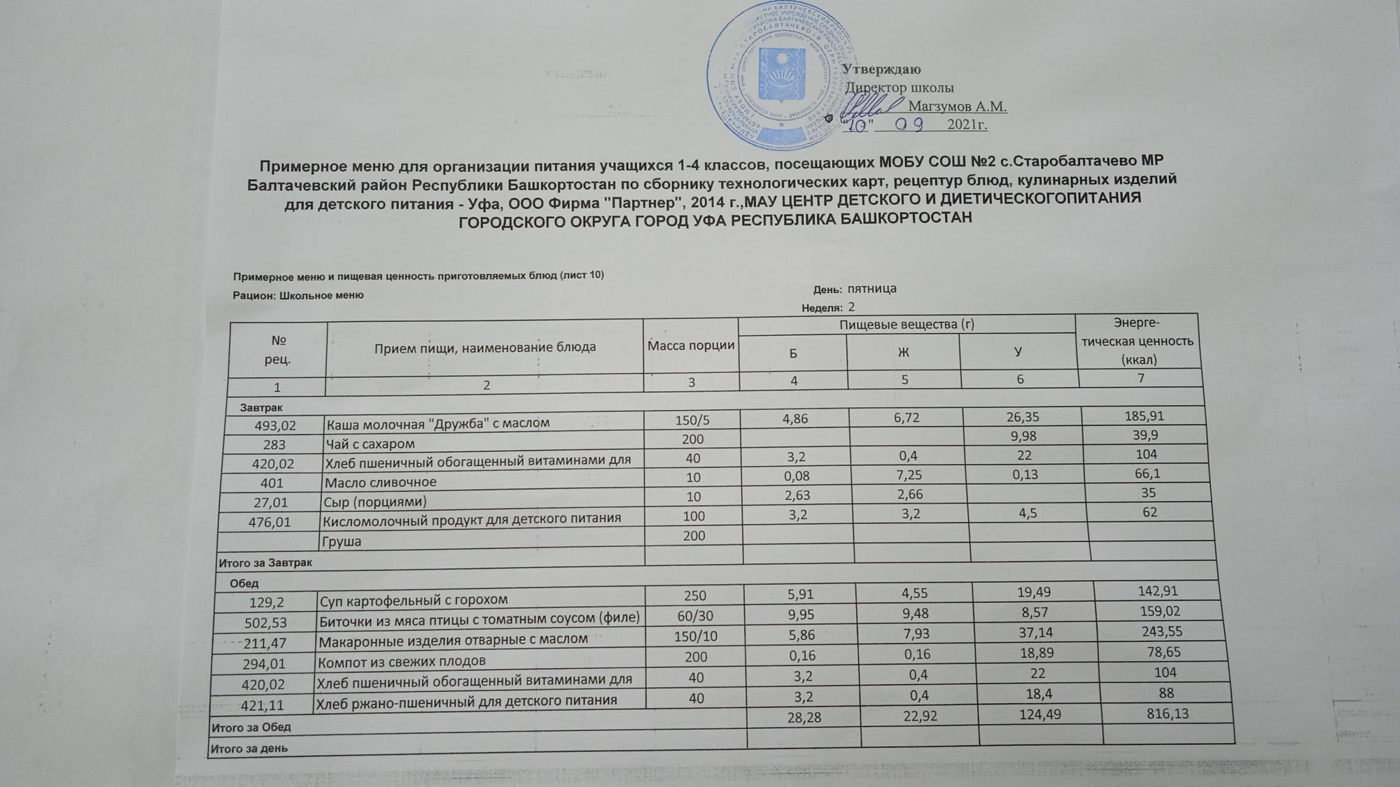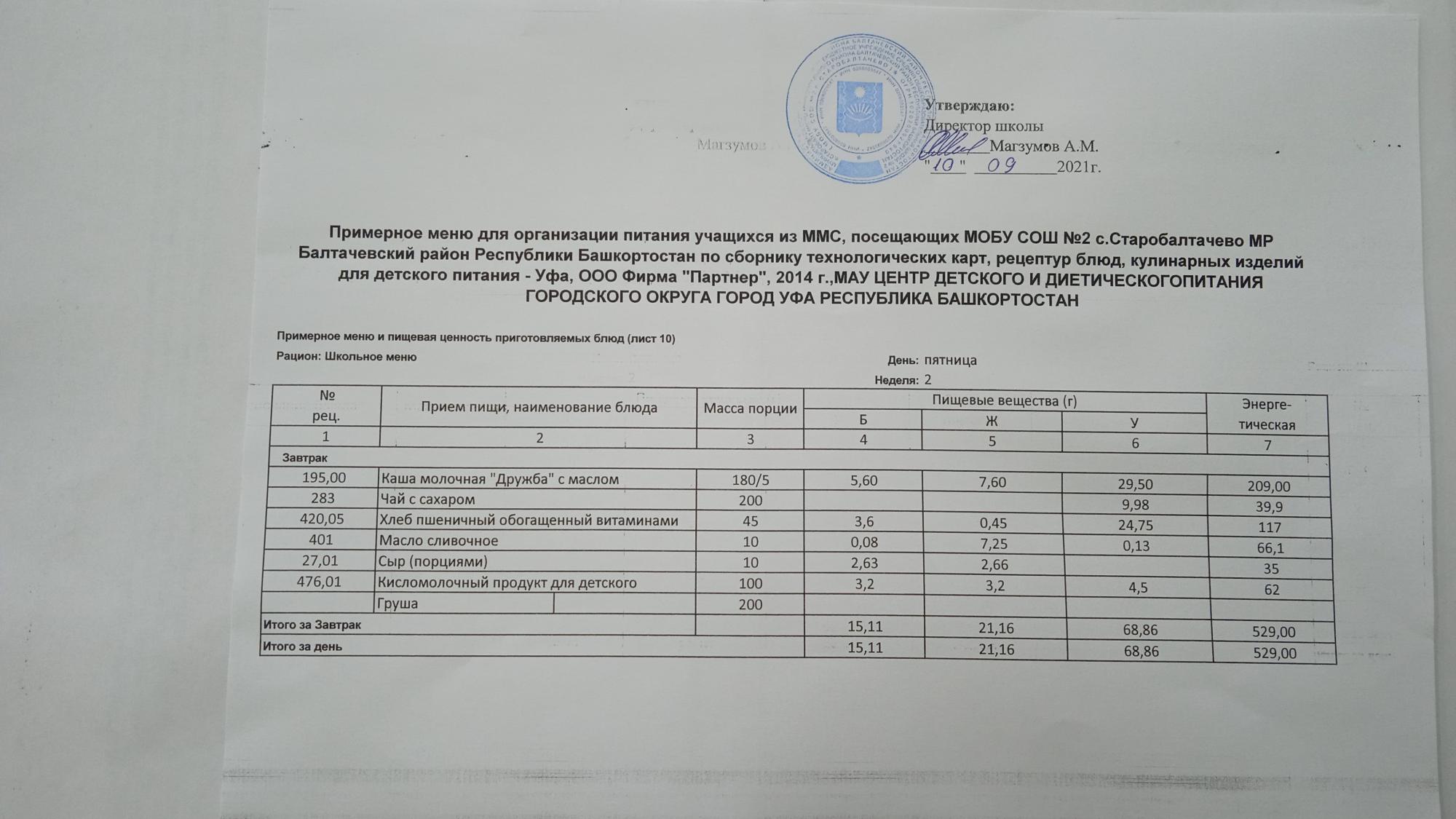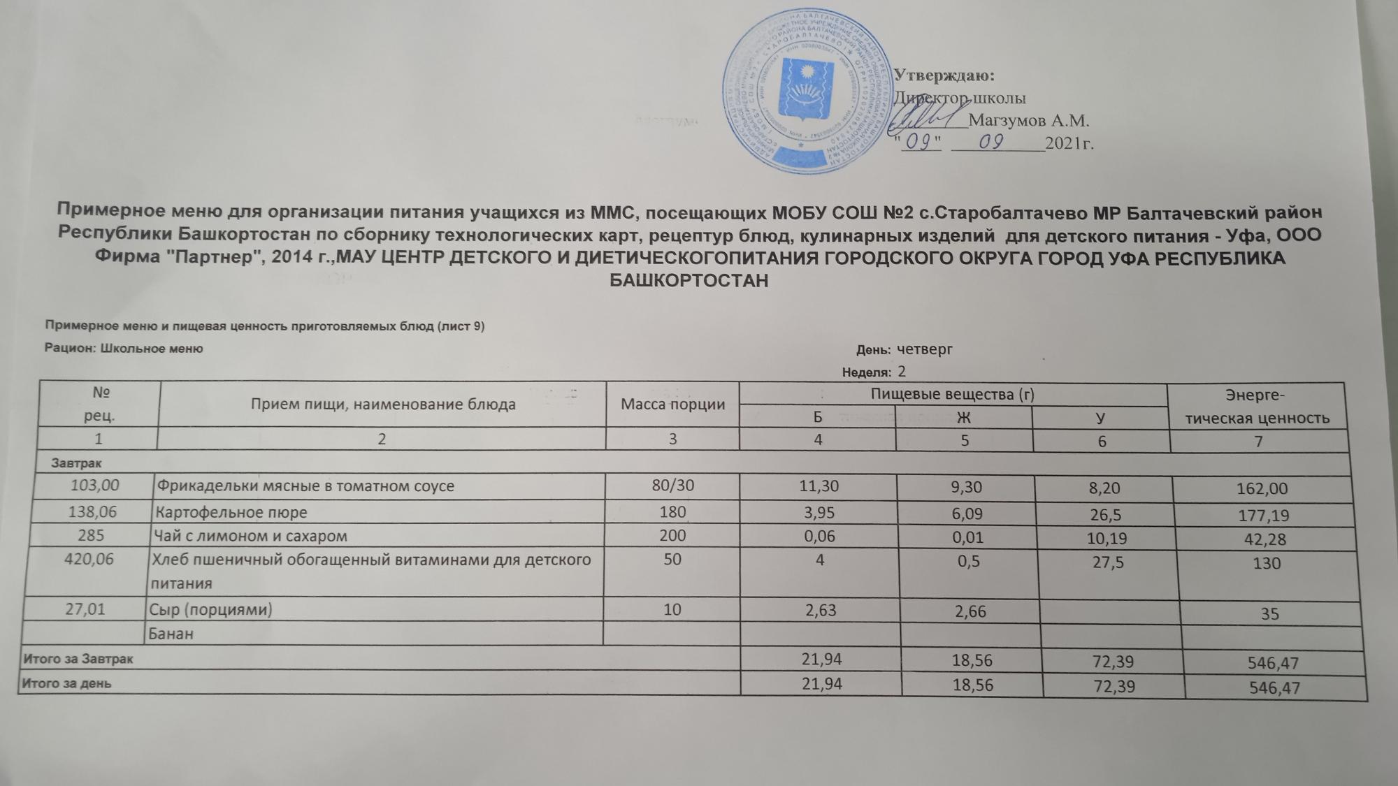 (Фото меню завтрака для учащихся за родительский взнос)