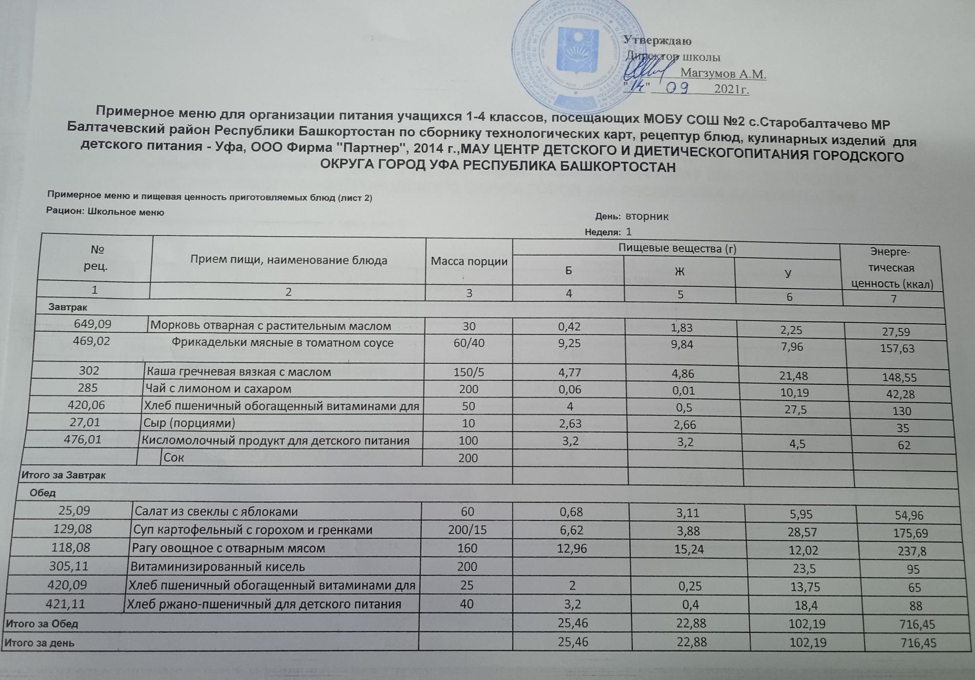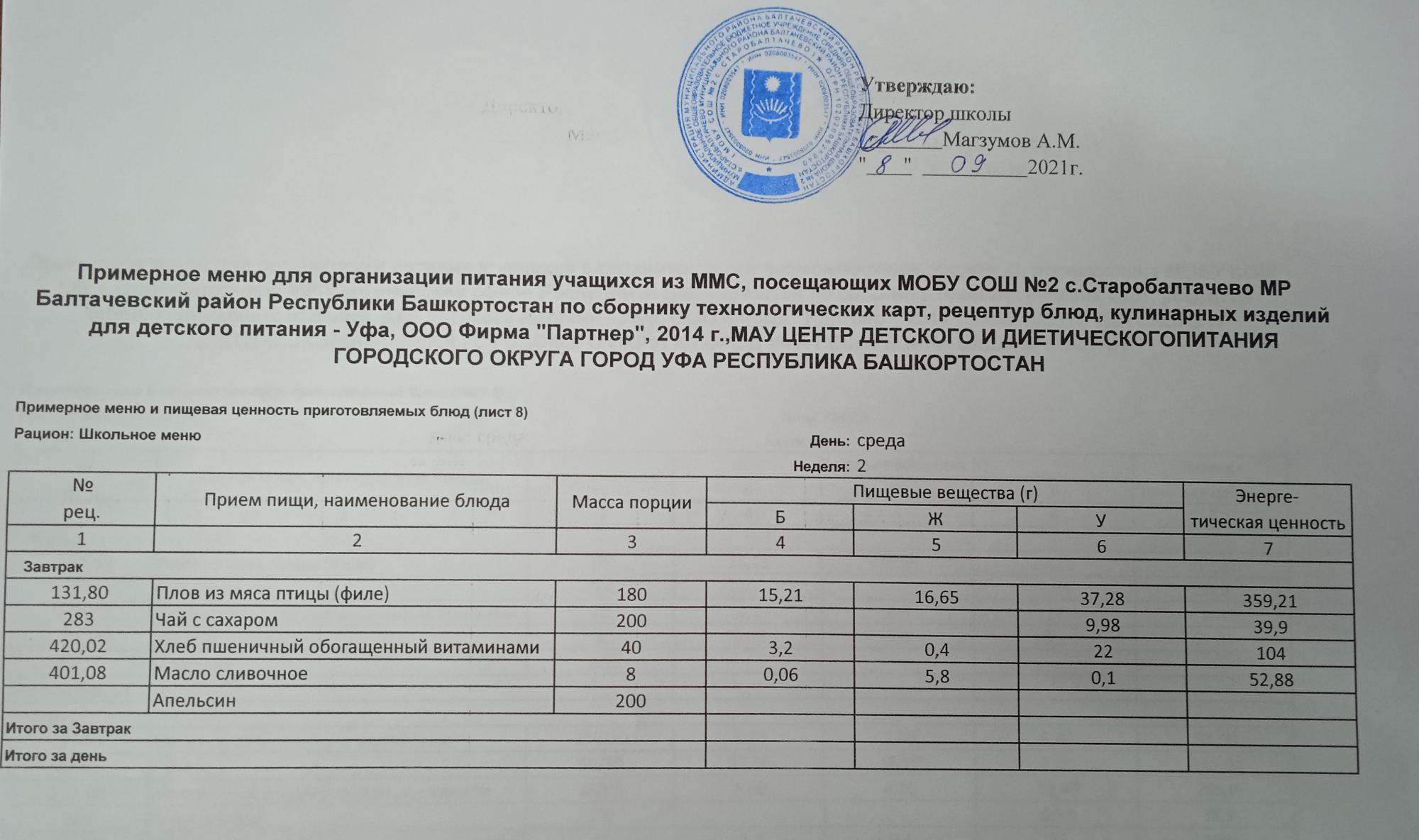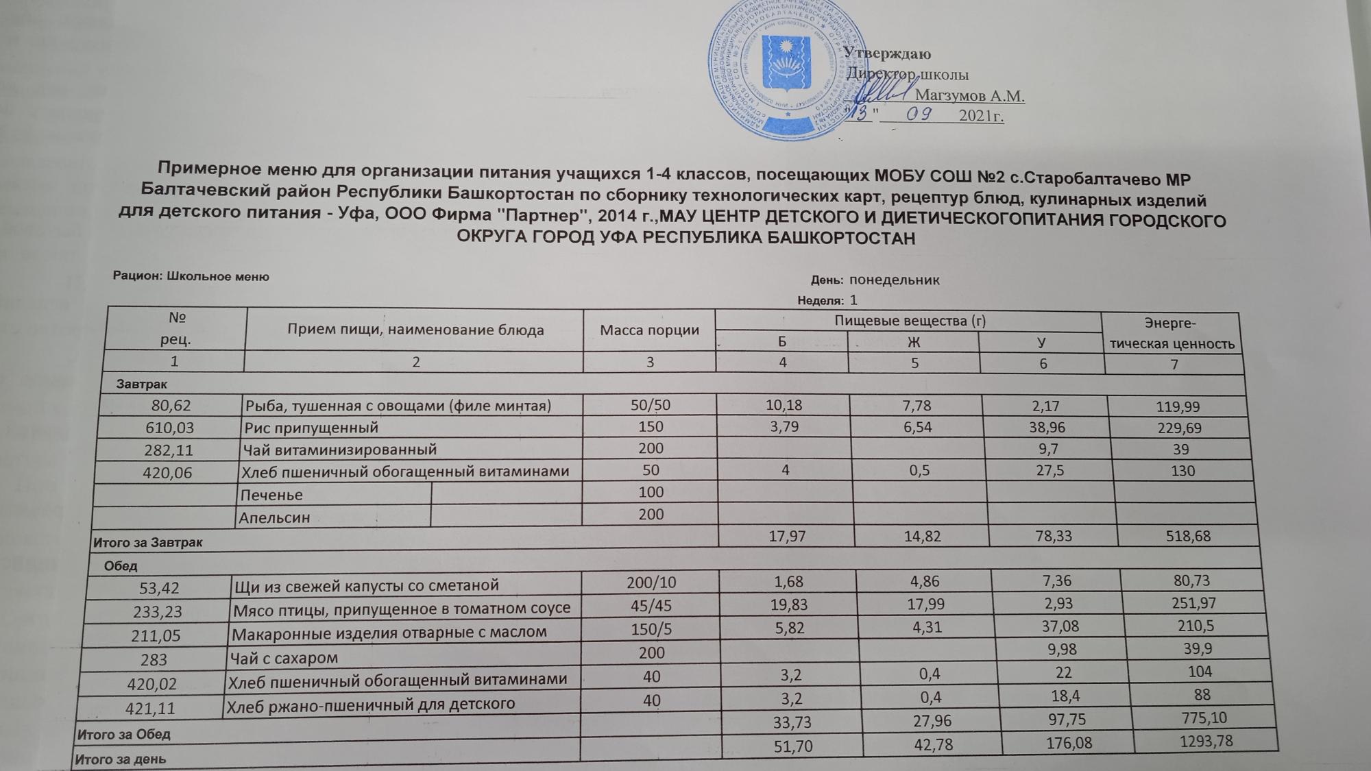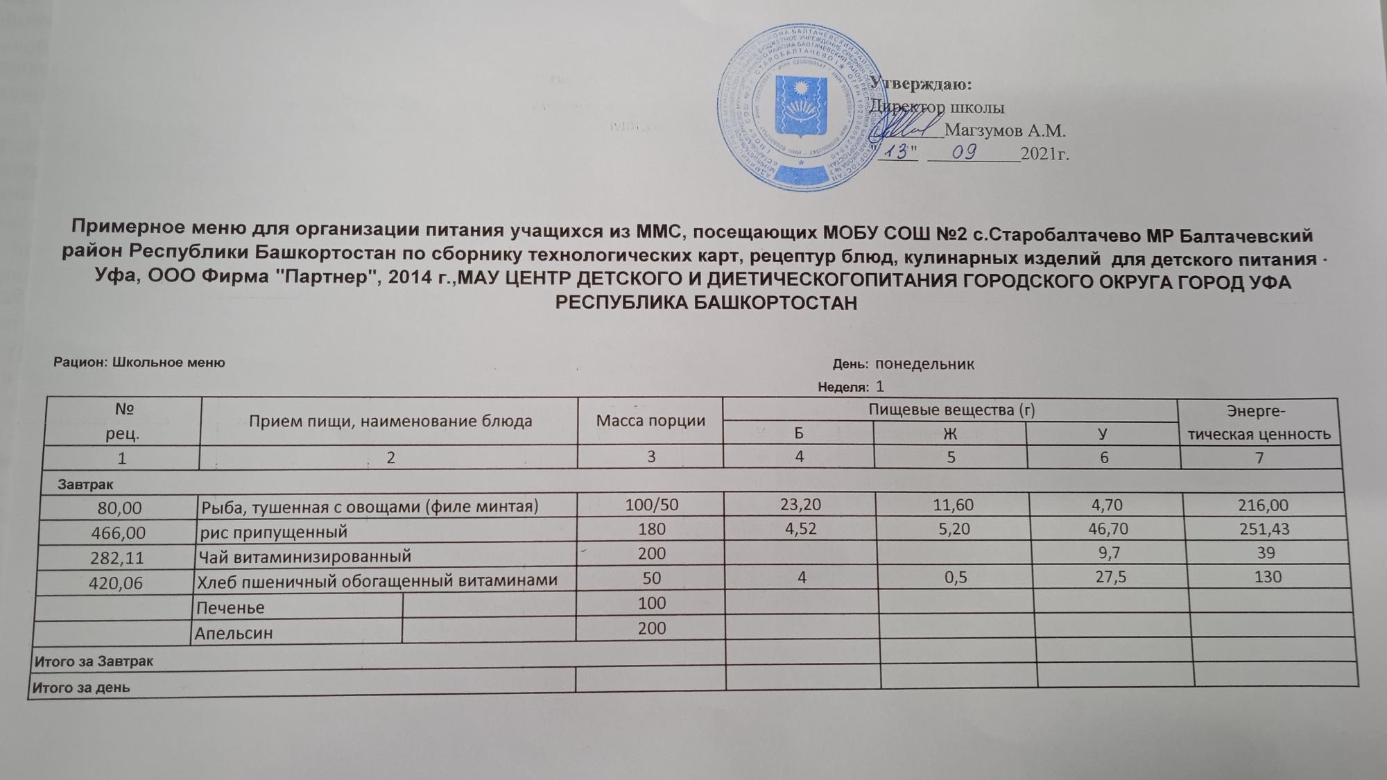(Фото меню завтрака для учащихся за родительский взнос)