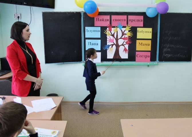 В 1в классе очень интересно прошёл классный час на тему: "Найди своего предка". С классным руководителем Гульшат Акмаловной Галимзяновой дети сделали совместную работу: учительница нарисовала корень и основание дерева, а учащиеся приклеили листья - свои работы в виде ручек. Тем самым наглядно показали и сравнили свою родословную с деревом. Также Гульшат Акмаловна привела в пример свою родословную до 6го поколения. Рассказала о своих прадедах и прабабушках, которые участвовали в Великой Отечественной войне. Учащиеся узнали кто это лингвист, исследователь, историк, практик. Также была проведена викторина, где разбирались в родственных связях. Дети, представив что у них машина времени, путешествовали в прошлое и "увидели" как жили их предки